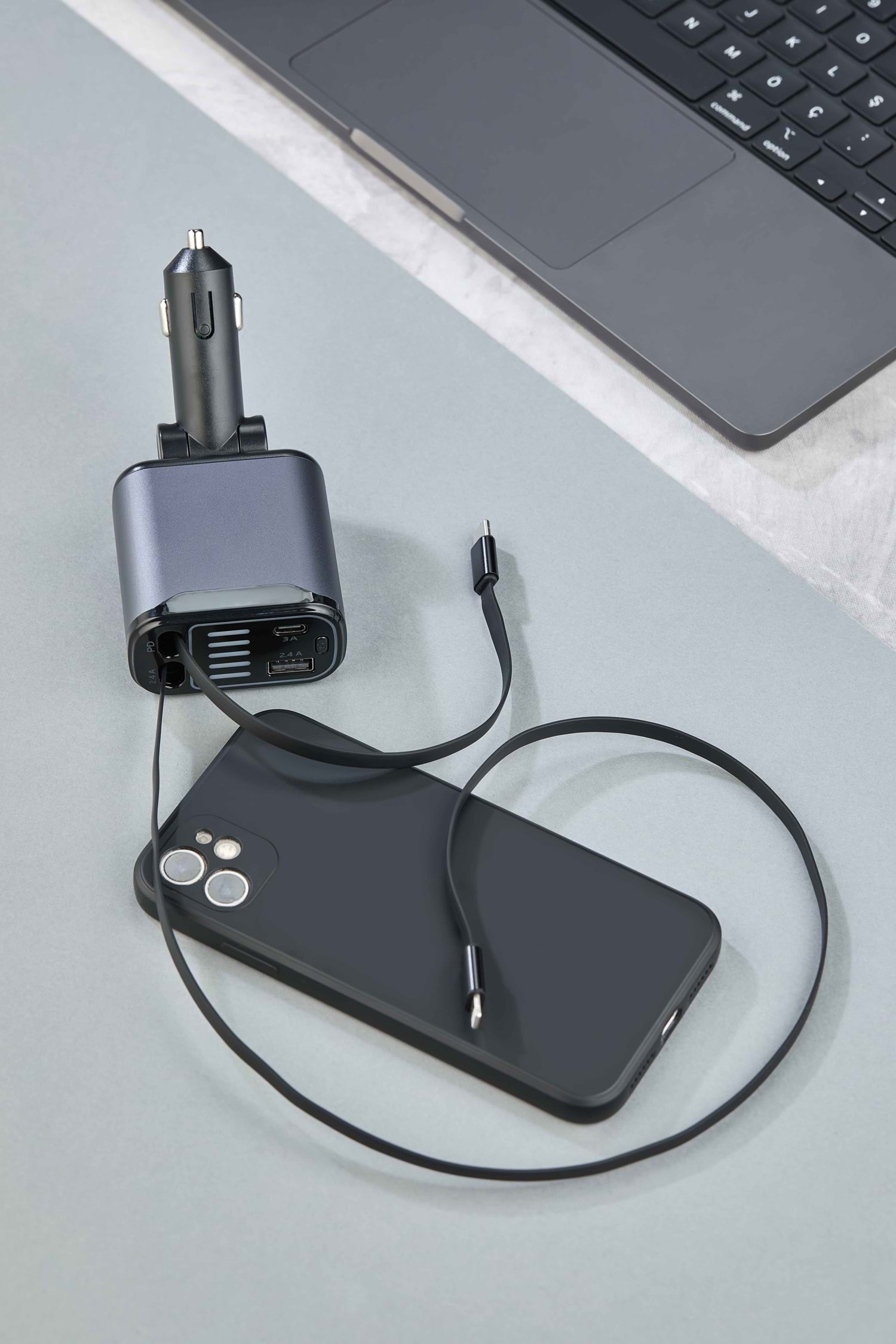 Ürün Ebadı : 14 x 6,3 x 3,5 cm Hızlı Şarj Özelliği 80 cm Makaralı Kablo Dahili Type-C + Lightning Kablo USB + Type C Kablo Girişi Yüksek akım ve kısa devre korumalı Çoklu Şarj Olanağı