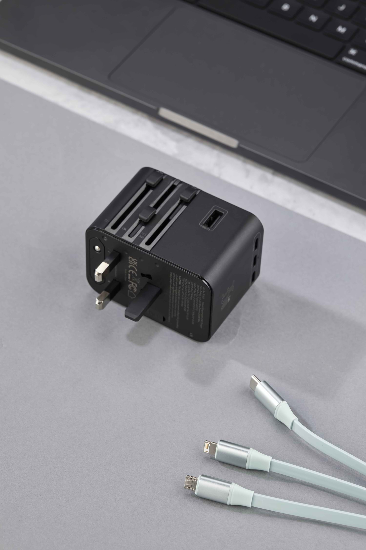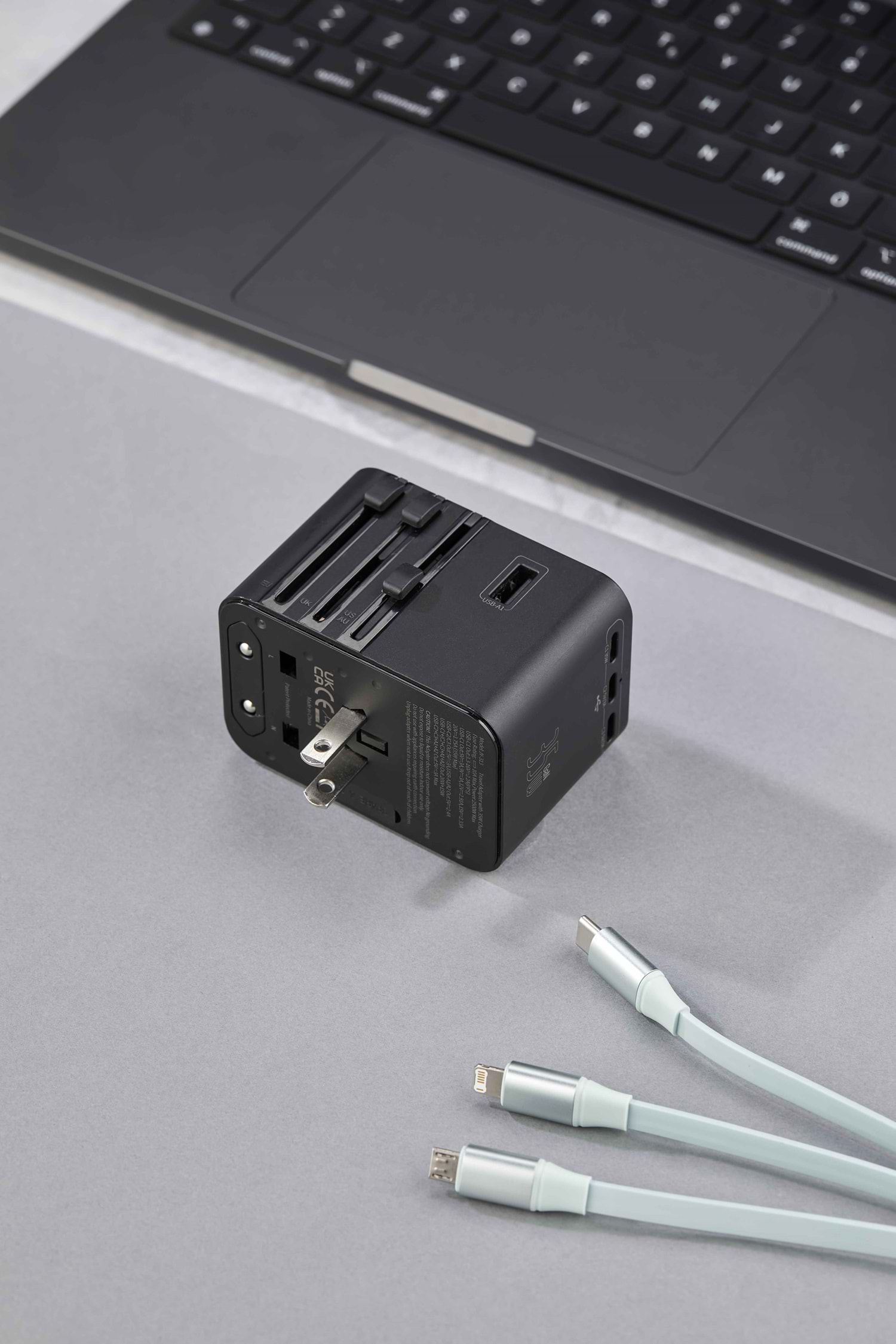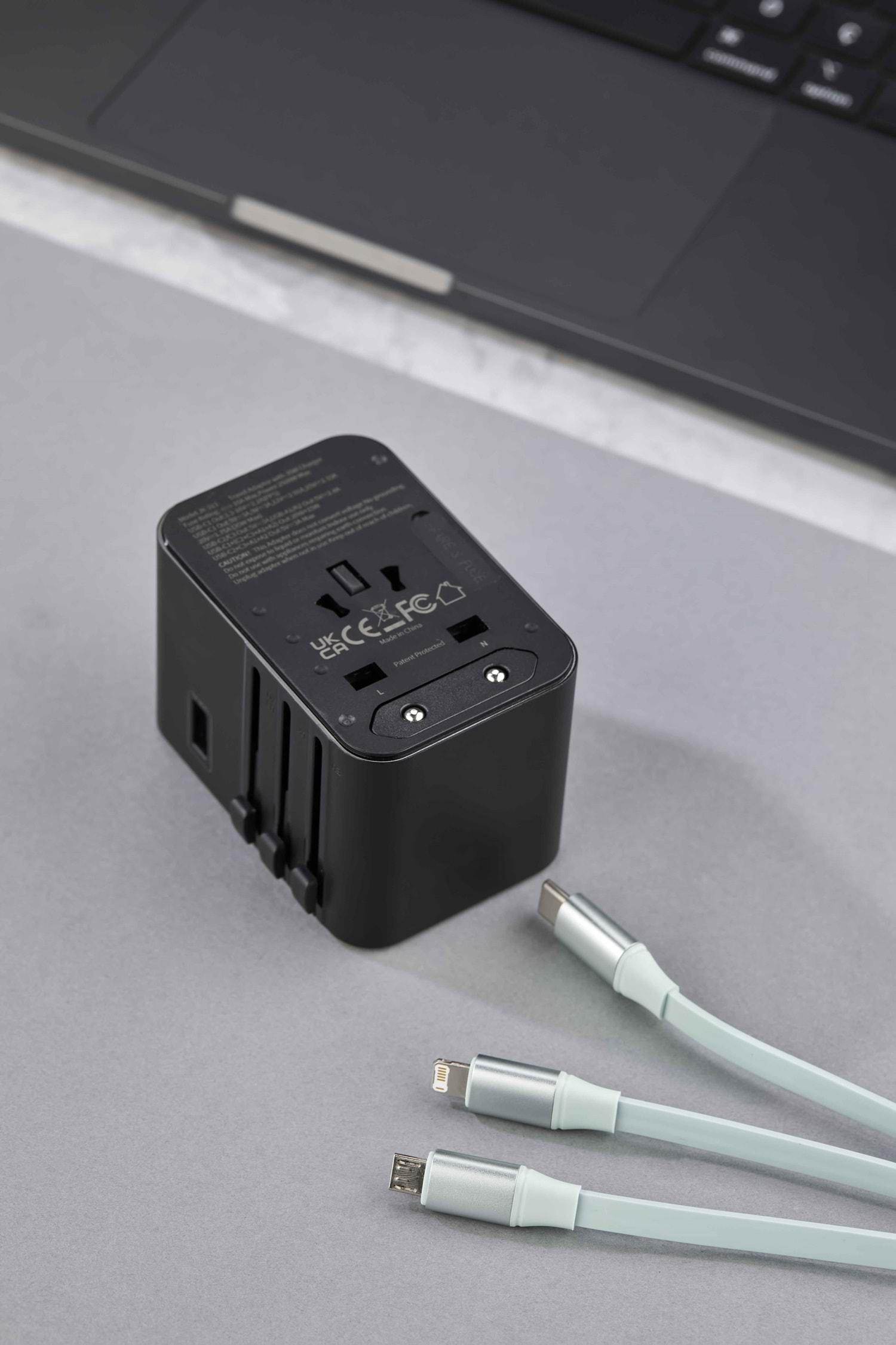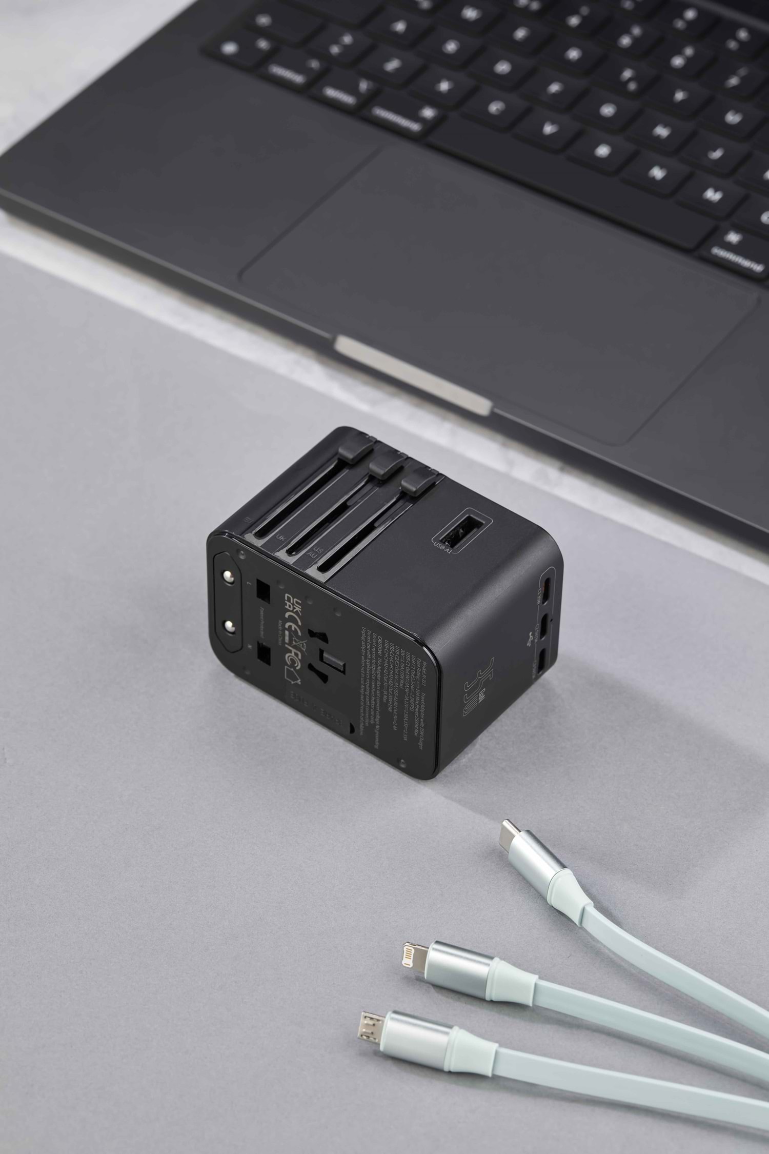 Ürün Ebadı : 5,5 x 7,6 x 5,3 cm Yüksek Performanslı Seyahat Adaptörü USB + Type-C + PD Çıkış Dahili Global Priz Başlık ve Yuvaları 45W Yüksek Performans 3 Adet USB C + 2 Adet USB A